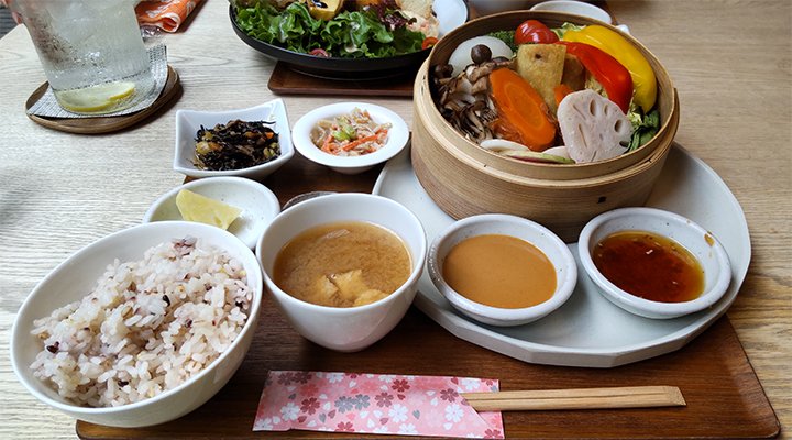 鮮やかな蒸し野菜と2種のソースが野菜の味を最大限に引き立てます(400g野菜仕様)